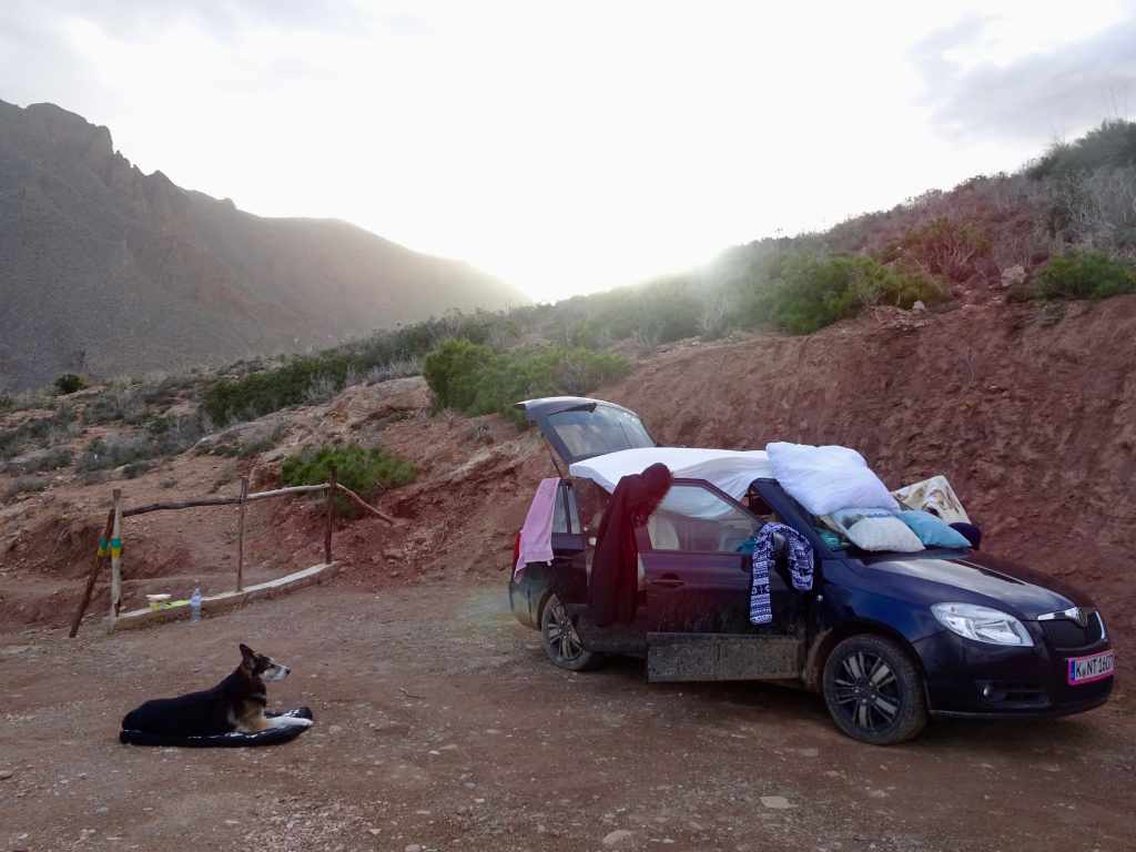 Außerhalb der Städte offenbart Marokko sich allerdings als wahres Hundeparadies. Die weitläufigen, menschenleeren Strände der Atlantikküste rund um Essaouira, die einsamen Wanderwege im Gebirge des Hohen Atlas, die weiten Ebenen der Agafay-Wüste und der Haouz-Ebene oder die kühlen Wälder des Al Hoceima Nationalparks im Norden, boten mir mit unter wunderschöne nächtliche Stellplätze. Hotelzimmer habe ich stets im Vorhinein reserviert und mich mithilfe einer zusätzlichen Mail rückversichert, dass Haustiere auch wirklich erlaubt sind.