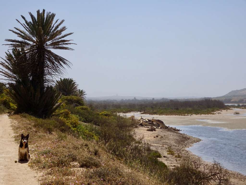 Leider endete mein Besuch an dem berühmten Strand schneller und dramatischer als gedacht. Mein Hund Gismo wurde von einigen Straßenhunden attackiert und ein Rüde verbiss sich in seinem Nackenfell. Ich kontaktiere sofort einen Tierarzt in Agadir und obwohl es Sonntagnachmittag war und ich nicht vor Abend wieder zurück sein würde, willigte er dennoch ein mich in der Praxis zu treffen. Wahrscheinlich erinnerte er sich daran, dass ich ihn bereits einige Tage zuvor gut bezahlt hatte, als ich ihm ein krankes Straßenkätzchen zum impfen und aufpäppeln brachte. Bis heute hat Gismo eine beidseitige Schwellung im Nacken, wo ihn die Zähne des anderen Hundes gepackt hatten. Glücklicherweise war dies das einzige wirklich negative Erlebnis im Bezug auf Straßenhunde während Gismos und meiner vielen gemeinsamen Reisen.