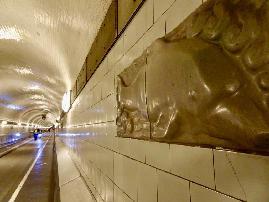Auf einer Länge von 426 Metern erstreckt sich der 1911 eröffnete alte Tunnel unterhalb der Elbe und verbindet so die Landungsbrücken mit dem Hafengebiet in Steinwerder. Rund 400.000 Kacheln schmücken nach aufwendigen Sanierungs- und Restaurationsarbeiten den Tunnel, der heute ganztägig für Fußgänger und Radfahrer geöffnet ist.