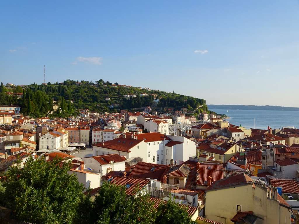Die Stadtmauern sind ein wunderschöner Aussichtspunkt über Piran und liegen nur 10 bis 15 Minuten Fußweg vom Tartiniplatz entfernt. Der Eintritt auf die Aussichtsplattformen kostet zwei Euro und ist absolut lohnenswert, denn du hast einen spektakulären Panoramablick auf die gesamte Halbinsel. Die Stadtmauern sind außerdem noch in einem sehr guten Zustand. So existieren noch immer sieben Stadttore in Piran, am bekanntesten ist wohl das Dofin-Tor im Herzen der Altstadt.