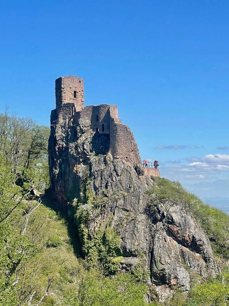 Vor den Ausläufern der Vogesen befinden sich einige der spektakulärsten Burgen des Elsass. Ganze 400 Burgen sicherten eins die Rheingrenze im Elsass, von denen viele aufwendig restauriert und heute für Besucher geöffnet sind. Die wohl bekannteste ist die Château du Haut–Koenigsbourg bei Orschwiller auf 757 Metern Höhe, am Ostrand des Vogesen-Gebirges. Mit über 500.000 Besuchern jährlich, ist die Burg aus der ersten Hälfte des 12. Jahrhunderts, einer der beliebtesten touristischen Sehenswürdigkeiten Frankreichs, was während unseres Besuchs auch eindeutig zu spüren war. Menschenmassen drängten sich auf das Burggelände hinauf, auf dem Hunde übrigens verboten sind. So beeindruckend der Ausblick bis zum Kaiserstuhl und die mittelalterliche Burganlage auch war, ich genoss die anschließende Ruhe bei der Wanderung zu den drei ebenso schönen Burgen von Ribeauvillé; Château de Saint-Ulrich, Château du Girsberg und Château du Haut-Ribeaupierre.