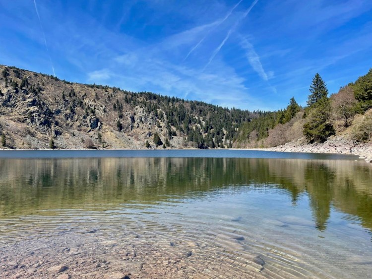 Ein schöner Gletschersee in den Vogesen ganz in der Nähe des Bergs Hohneck, ist der Lac du Schiessrothried, dessen Namen ich bis heute nicht korrekt aussprechen kann und der einst durch den Bau eines Staudamms entstand. Vorsicht, wenn du den See als Reiseziel bei Google Maps eingibst, landest du schnell auf einer steinigen Offroad-Piste mitten im Wald, die zwar von vielen Anglern täglich befahren wird, aufgrund der Felsen und Engpässe jedoch eher nicht zu empfehlen ist. Stelle dein Fahrzeug besser auf dem Parkplatz direkt vor dem Waldweg ab.
