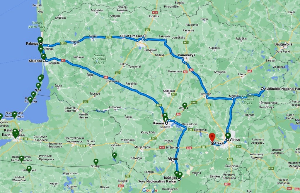 Bis auf die Schlaglöcher auf den Landstraßen und die besonders in den Wintermonaten teils unpassierbaren Straßen in den Nationalparks, empfand ich die knapp 1.000 Kilometer auf den litauischen Straßen als sehr angenehm. Es gilt innerorts maximal 50 km/h, außerorts maximal 90 km/h, auf Schnellstraßen maximal 110 km/h und auf den zwei vorhandenen Autobahnen max. 130 km/h. Eine Maut für PKWs und Wohnmobile gibt es nicht. Lediglich bei der Einreise in die Kurische Nehrung ist an den Kontrollposten in Alksnynė oder Nida eine, abhängig der Jahreszeit, Gebühr von 5-30 Euro zu verrichten. Mein Auto hatte gleich zwei Pannen in Litauen. Eine Sonntag Mittag an einem abgelegenen Strandparkplatz, eine Abends um 22 Uhr im Dauerregen in Palanga. Die litauischen Werkstätten arbeiten langsam und es kann teilweise sehr schwierig sein, an passende Ersatzteile zu gelangen. Eine ADAC-Mitgliedschaft (Plus) ist für mich auf Roadtrips daher ein absolutes Muss.