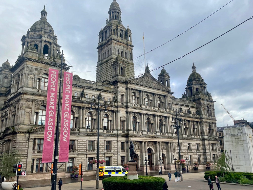 Als zentraler Platz vor dem Rathaus bildet der George Square das Herz der Stadt. Er ist nach König George III. benannt und war einst eine matschige Einöde, auf der im 17. Jahrhundert zuerst private Gärten errichtet wurden und im 19. Jahrhundert ein öffentlicher Platz entstand.