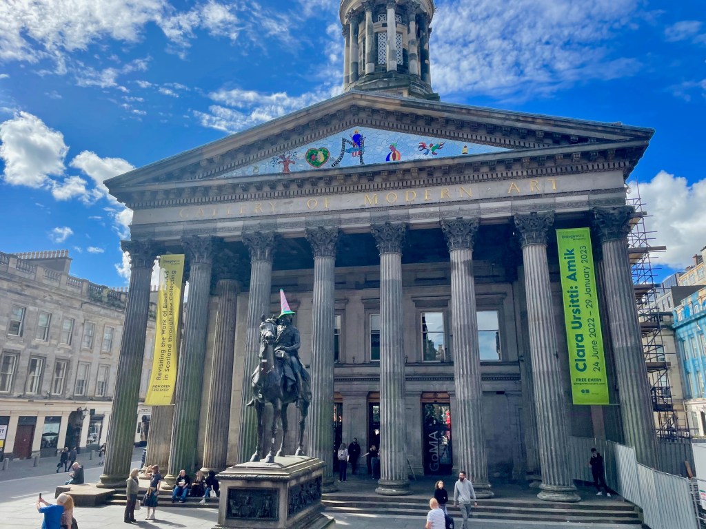 Gerade auf Reisen mit Hund informiere ich mich schon vor der Buchung der Unterkünfte über Spaziermöglichkeiten für Gismo. In Glasgow war es im August regnerisch und kühl, weshalb ich Gismo auch auf Spaziergängen durch das Stadtzentrum mitnahm (allerdings nicht mit in den Hop on Hop off-Bus), allerdings sind Hunde natürlich in den Museen, Kirchen und auch leider vielen Restaurants nicht gestattet.