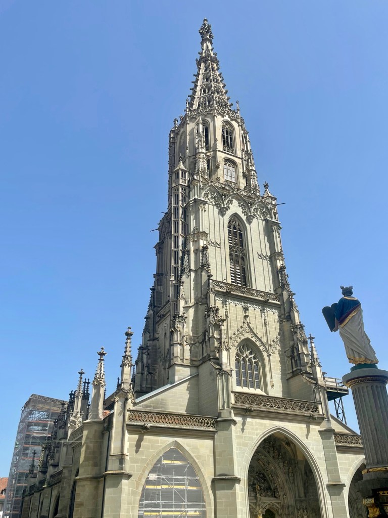 Das Berner Münster ist die größte spätmittelalterliche Kirche der Schweiz und einst im Stile der Gotik errichtet worden. Neben den Verantwortlichen der Stadt Bern, zählte zu den Bauherren auch der Deutsche Orden. Der 312-stufige Aufstieg zur Aussichtsplattform habe ich mir bei 34 Grad Außentemperatur letzten Juni in Bern erspart. Ich habe mir aber sagen lassen, der die Aussicht auf die Stadt klasse sein soll.