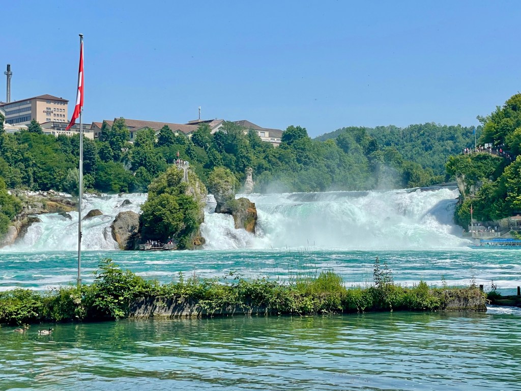 Übrigens, Fische können der Kraft des Wassers am Rheinfall nicht entgegen schwimmen und ihn so auch nicht überwinden. Die einzige Ausnahme bietet der Aal, der sich seitwärts direkt am Ufer, den Wasserfall entlang schlängelt.