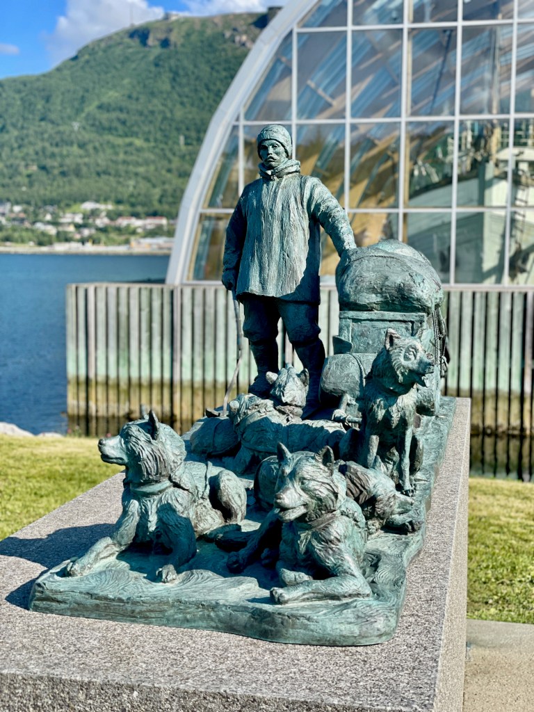 Da Tromsø relativ klein ist, sind die meisten Sehenswürdigkeiten fußläufig gut zu erreichen. Die vielen bunten Häuser im Hafen verleihen der Stadt den typisch norwegischen Flair, wie ich ihn schon aus Trondheim, Bergen und Oslo kenne. Die Bronzestatue eines Mushers und seiner Huskys vor dem Polaria, erinnert an die vergangenen Expeditionen quer durch den hohen Norden, die viele der tapferen Hunde nicht überlebten. Wenn du dich schon einmal auf die Husky-Schlittentouren in Norwegen einstellen willst, hier eine Liste mit den 5 besten Hundeschlitten-Filme aller Zeiten.