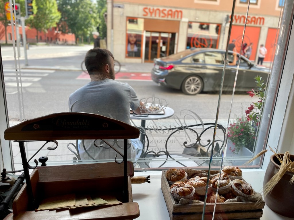 Eine wichtige kulturelle und außerdem sehr leckere Tradition, ist die schwedische Fika. Eine Kaffeepause, üblicherweise einmal in den Morgen- und einmal in den Abendstunden. Begleitet wird der Kaffee meist von süßen Gebäck, Keksen oder Kuchen. Mein Tipp: Der Blaubeerkuchen der Ofvandahls Hovkonditori in Uppsala.