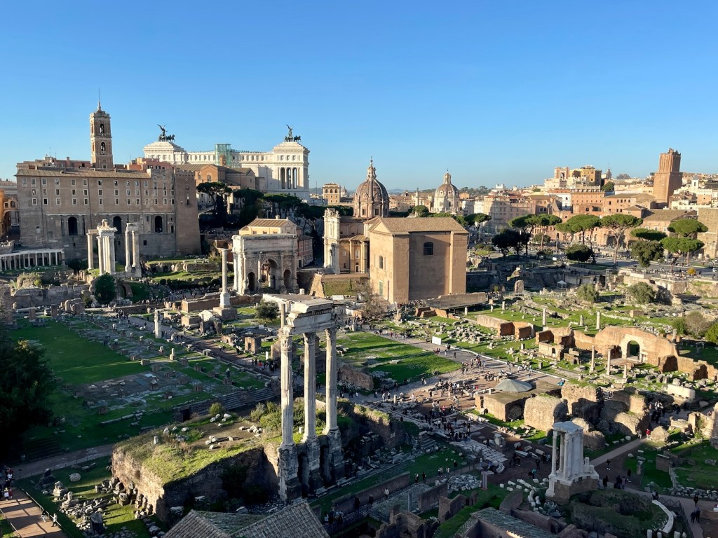 Senatus Populusque Romanus (SPQR) – Senat und Volk von Rom. Sie alle trafen sich im Forum Romanum, dem wichtigsten politischen, religiösen und wirtschaftlichen Zentrum Roms. Der Schriftzug SPQR, einst das stolze Hoheitszeichen der Römer, ist auch heute noch allgegenwärtig in der Stadt: Er ziert Schrifttafeln, Kanaldeckel, Mülleimer und öffentliche Gebäude. Doch während der Name fortlebt, sind vom Forum selbst nur noch Ruinen und Überreste vorhanden. Trotzdem bleibt es die größte archäologische Ausgrabungsstätte Roms und ein faszinierendes Fenster in die Vergangenheit. Das Forum diente einst als lebhafter Marktplatz, umgeben von monumentalen Bauwerken, die das öffentliche Leben der Stadt prägten: zahlreiche Tempel, politische Gebäude und prächtige Basiliken. Zu den eindrucksvollsten Überresten zählen die Tempel des Saturn, des Castor und Pollux, die mächtigen Triumphbögen von Titus und Septimius Severus, sowie die Säulen der Basilica Aemilia und die Maxentius-Basilika, von der noch Teile des Gewölbes erhalten sind. Zudem befanden sich hier einst die Curia Julia, der Sitz des römischen Senats, und die Rostra, die berühmte Rednertribüne, von der aus Roms Politiker und großen Redner das Volk mit ihren Worten inspirierten.