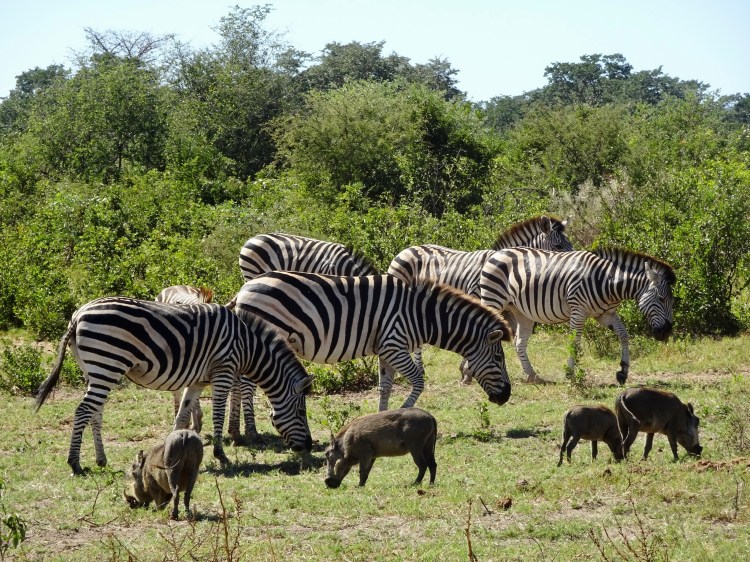 Ich war den ganzen Tag in Mahango unterwegs. Zur Mittagszeit parkte ich auf einer offenen Fläche direkt neben einem tief im Park gelegenen Beobachtungsstand. Es war heiß, ich war müde von der langen Fahrerei und dem frühen Aufstehen, und so gönnte ich mir einen kurzen Mittagsschlaf auf dem Fahrersitz. Um mich herum grasten Zebras und Warzenschweine in friedlicher Harmonie. Am frühen Nachmittag machte ich mich wieder auf den Weg zurück zum Ufer des Cubango, als plötzlich eine riesige Büffelherde meinen Weg kreuzte. Die goldene Regel der Safari hatte sich einmal mehr bestätigt. Am Flussufer begegneten mir schließlich auch die ersten anderen Fahrzeuge des Tages. Sie folgten den Elefantenherden, die nun zum Trinken ans Wasser kamen, großen Affengruppen, die sich über Wege und Bäume verteilten, sowie den friedlich umherstreifenden Antilopen.