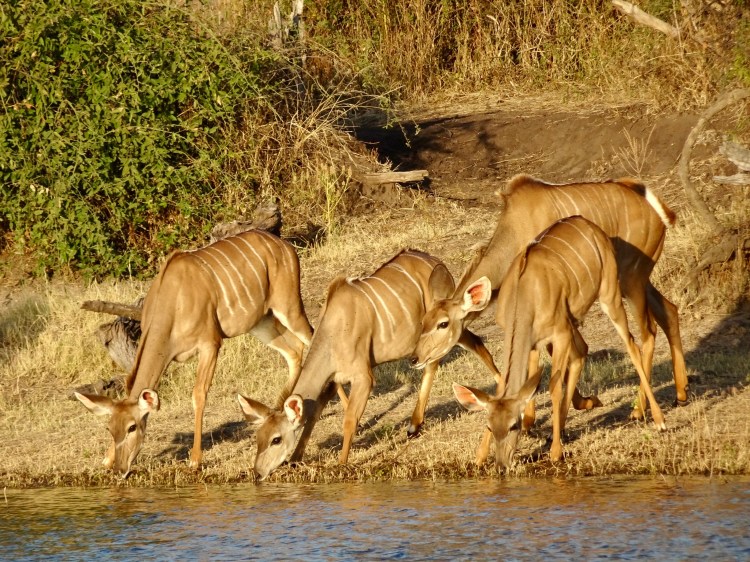 Ich übernachtete im Chobe River Camp direkt am Ufer des Chobe. Von Kasane bis zum Camp ist die Straße durch den Park übrigens asphaltiert, du brauchst hier also noch keinen Allrad. Zum Sonnenuntergang unternahm ich eine Bootstour auf dem Chobe und die goldene Stunde enttäuschte nicht – wir entdeckten Krokodile, zahlreiche Wasservögel und Elefanten, Kudus, Giraffen, Paviane und viele andere Tiere, die es zum Trinken an den Fluss zog. Den Campingplatz solltest du unbedingt vorab über die Gondwana Webseite reservieren, da es nur sechs Stellplätze gibt. Ebenfalls auf dem Chobe, allerdings schon auf namibischer Seite, befindet sich die Zambezi Queen by Mantis, ein Luxusschiff, auf welchem Besucher Mehrtagessafari auf dem Chobe unternehmen können.