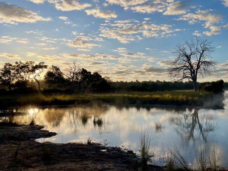 Als ich im Februar 2025 erstmals nach Namibia einreiste, befand sich das Land mitten in einer der wasserreichsten Regenzeiten seit rund einem Vierteljahrhundert. Die teils enormen Wassermassen, welche die ersten Wochen meines dreimonatigen Volontariats auf der Kambaku Safari Lodge bestimmten, bezeichneten viele Namibier gleichermaßen als „gift from God“ wie auch als „blessing“. Rund 80 Prozent der Niederschläge der Regenzeit fallen im Caprivistreifen. Im Frühjahr 2025 hörte ich immer wieder Berichte von Reisenden, die im tiefen Schlamm der Nationalparks im Caprivi stecken geblieben waren. Zugleich führten die Flüsse Zambezi, Kwando, Linyanti und Chobe derart viel Hochwasser, dass Dörfer überflutet wurden und einige Regionen zeitweise nicht mehr zugänglich waren. Das Ngepi Camp etwa war für mehrere Tage vollständig von der Außenwelt abgeschnitten. Ähnliches widerfuhr im April 2025 auch der Düsternbrook Guestfarm, auf der ich ebenfalls drei Monate als Volontärin arbeitete.