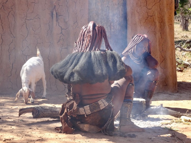 Die Ovahimba. Sie leben im trockenen Nordwesten Namibias, dort wo Staub, Sonne und Wind den Rhythmus des Tages bestimmen. Sie siedelten schon in der Region, als es Namibia und Angola als Länder noch gar nicht gab, sodass Familien heute häufig über Staatsgrenzen hinweg verbunden sind. Auch in meinem Reiseführer wurden sie unter dem Namen Himba aufgeführt –doch Ovahimba ist die Bezeichnung, mit der sie sich selbst benennen: ein Wort aus ihrer Sprache Otjiherero, das schlicht „die Himba-Leute“ bedeutet. Traditionell leben sie halbnomadisch, d. h. sie haben feste Heimatsiedlungen mit Hütten, Viehgehegen und vor allem dem heiligen Feuer, während gleichzeitig einzelne Familienmitglieder oder ganze Haushalte saisonal umziehen, vor allem mit dem Vieh, um Weideflächen und Wasserstellen zu suchen. Reichtum ist bei den Himbas vierbeinig – denn Status misst sich bei ihnen nicht in Geld, sondern in Rindern. Genau genommen züchten sie seit jeher Sanga Rinder, die für ihre langen, gebogenen Hörner bekannt sind. Die Ovahimba führen einige Traditionen, die für uns Westler auf den ersten Blick seltsam wirken, jedoch tief mit der Stammesgeschichte verbunden sind. Viele Ovahimba waschen sich wochen- oder monatelang nicht mit Wasser. Stattdessen nutzen sie Rauchbäder und otjize – eine Mischung aus Butterfett und rotem Ocker. Das schützt vor Sonne, Insekten und Austrocknung. Die Dörfer sind nach einer ganz speziellen Weise aufgebaut, mit dem Dorfältesten im Zentrum und dem Tiergehege in der Mitte, um das wertvolle Vieh vor Angriffen durch Wildtiere zu schützen.