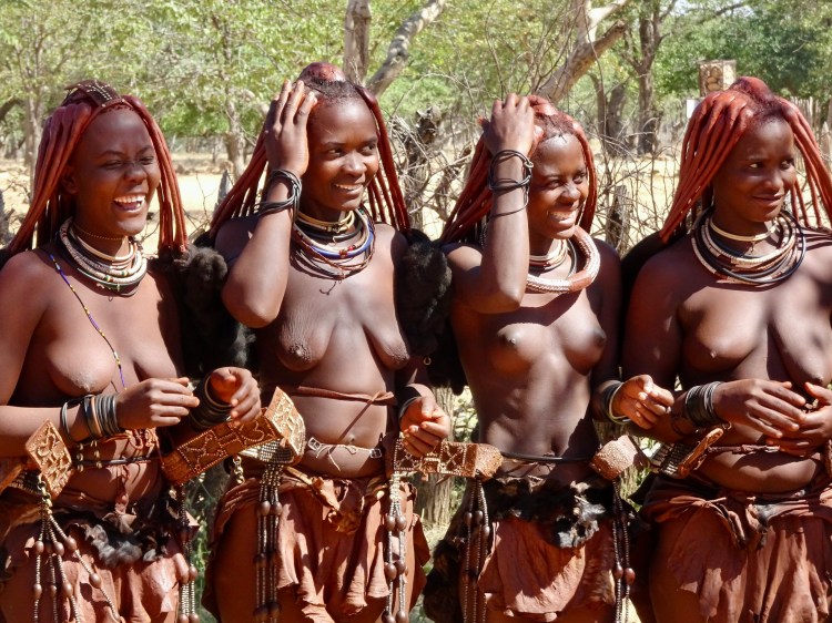Am Ende meines Besuchs fragten mich dann noch zwei Himbafrauen, ob ich sie mit auf meinem Weg nach Epupa nehmen könnte. Ich willigte zwar ein, am Ende entschieden sie sich aber doch dagegen mit zu fahren. Glück für mich – denn ihre rote Hautfarbe hätte mir die teuren Sitze meines Mietwagens ziemlich eingesaut. Asco hätte mir mit Sicherheit eine sehr hohe Reinigungsgebühr in Rechnung gestellt. Diese rote Hautfarbe ist nämlich kein „Look für Touristen“, sondern Schutzschicht, Identitätsmarker und Lebensanzeige zugleich. An Frisuren erkennt man sofort: Kind, unverheiratet, verheiratet, Mutter – noch bevor ein Wort gesprochen wird. Fürs Autofahren sind die rote Hautfarbe und die lehmigen Haarsträhnen jedoch absolut ungeeignet.