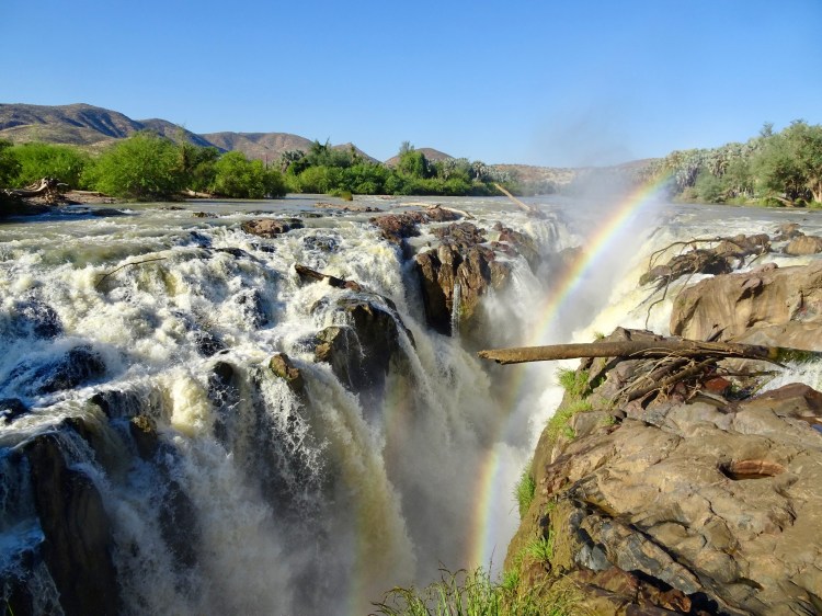 Die Epupa Falls werden im Nachbarland Angola auch Monte-Negro-Fälle genannt. Für die Hereros bedeutet epupa in Otjiherero „Schaum“, in Anspielung auf die Schäumung der Wasserfälle, wenn sie an ihrer höchsten Stelle 40 Meter in die Tiefe stürzen. Die Kraft des Kunene-Flusses hat an dieser Stelle enge Schluchten ausgewaschen. Tatsächlich gehören die Felsen der Epupa Falls zu den ältesten Gesteinen Namibias. Einige von ihnen sind etwa 2,5 Milliarden Jahre alt! Es gibt mehrere (inoffizielle) Aussichtspunkte rund um die Fälle. Tatsächlich kannst du bis an die steilabfallende Kante der Fälle heran, an der keine Absperrung Besucher vor dem tödlichen Sturz die Kante herunter schützt. Die Felsen sind feucht und rutschig – aber in Afrika ist wie so oft eben jeder für sich selbst verantwortlich. Apropos für sich verantwortlich sein – vor einigen Jahren löste der Plan der namibischen Regierung, ein Wasserkraftwerk im Gebiet Epupa am Kunene zu bauen, entschiedene Proteste der letzten dort lebenden Halbnomaden Namibias, der Ovahimbas aus. Damit verhinderten sie den Bau, der jetzt in die Region der Baynesberge verschoben werden soll.
