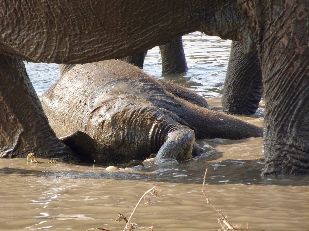 Am späten Nachmittag werden die Wasserlöcher im Park häufig von großen Elefantenfamilien frequentiert, die zum Trinken und Baden herkommen. Alle anderen Tiere, die zu der Zeit zufällig auch Durst haben, müssen solange eben warten. Breit- und Spitzmaulnashörner treffen hier übrigens selten aufeinander. Sie trinken zu unterschiedlichen Tageszeiten und bevorzugen zudem unterschiedliches Terrain: Breitmaulnashörner sind Grasfresser und halten sich daher viel auf offenen Ebenen mit kurzen Gräsern auf, wohingegen Spitzmaulnashörner sogenannte Browser, also Blätter-, Zweig- und Strauchfresser sind.