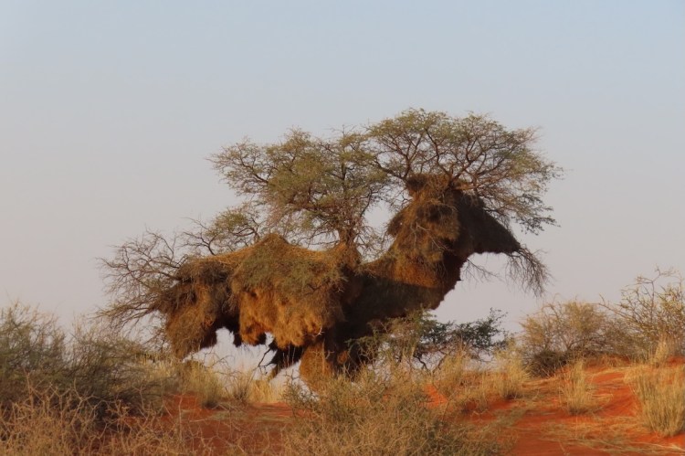 Die Kalahari ist eine ausgedehnte Halbwüste im südlichen Afrika und mit rund 900.000 km² die größte zusammenhängende Sandfläche der Erde. Sie erstreckt sich über weite Teile Namibias, Botswanas und Südafrikas. Als Halbwüste wird sie bezeichnet, weil hier, anders als in „echten“ Wüsten, zwischen 100 mm und 650 mm Niederschlag im Jahr fallen. Zum Vergleich: In der Namib sind es meist weniger als 50 mm. Genau diese Feuchtigkeit sorgt dafür, dass in der Kalahari Tierarten vorkommen, die man eigentlich nicht mit einer Wüste verbindet: Löwen, Leoparden, Wasserbüffel, Nilpferde, Krokodile und unzählige Vogelarten. In Namibia fallen dir entlang der Straßen vor allem die riesigen Nester der Siedlerweber ins Auge, die wie Strohdächer von den Ästen hängen. Aber Vorsicht – Rund um diese Bäume oder in den Ästen selbst lauern nicht selten Schlangen. Zu den artenreichsten Gebieten innerhalb der Kalahari zählt das Okavango Delta im nördlichen Botswana, das größte Binnendelta der Welt. Der größte Teil der Kalahari liegt ohnehin in Botswana. In Namibia hingegen bleibt Wasser, wenn überhaupt, nur in den sogenannten Vleis stehen und versickert ansonsten schnell im Sand.